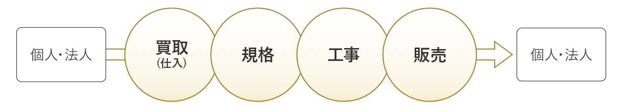 再生した不動産は販売まで一貫して行い、購入される方にとっては資産価値の高い住宅を、地域にとっては良質な住環境をもたらします。